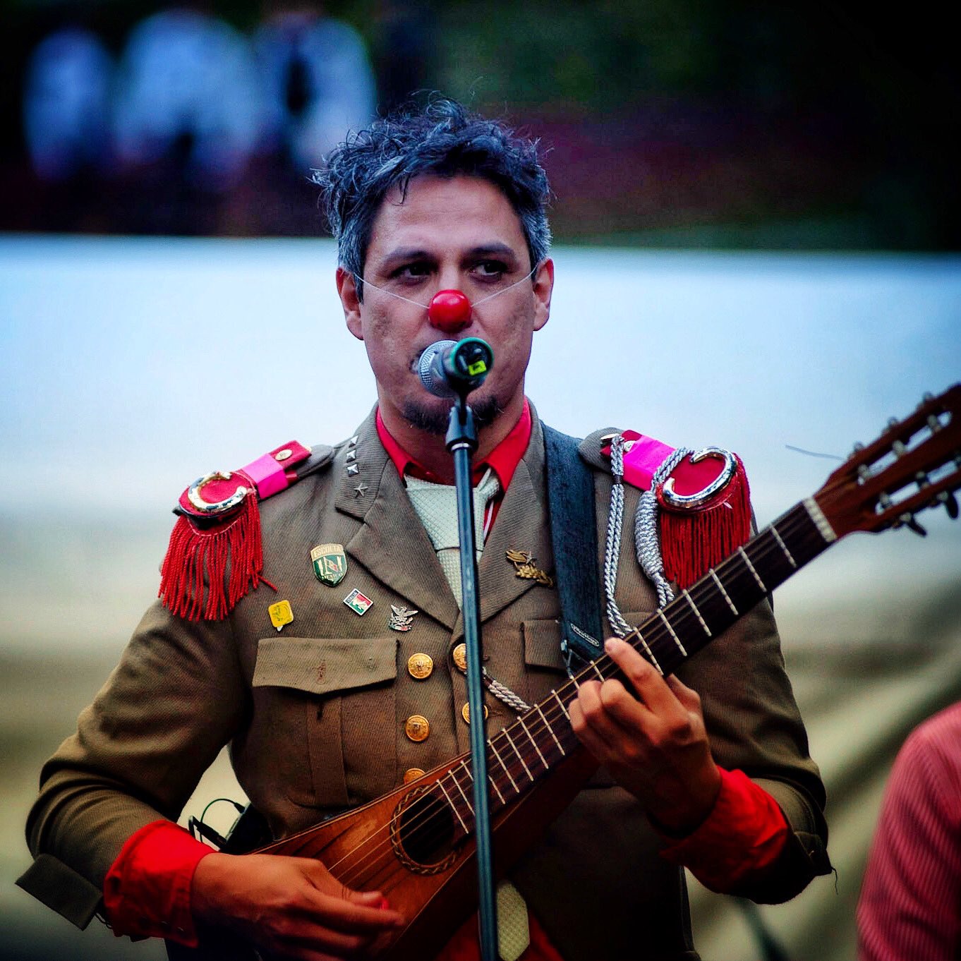 Yo creo que en TCB, además de la música, siempre nos hemos interesado por cosas como lo escénico, como el teatro y el cine, las cosas culturales; porque fuimos en escuelas en dónde había además de música otros aspectos como la danza por ejemplo, y por ello siempre fue importante para nosotros acercarnos a eso, por lo que TCB siempre ha desarrollado o hecho música que de algún modo es muy incidental si te das cuenta, y dónde algunas de las canciones al principio eran eran muy instrumentales y abarcaban un poco cosas gitanas; y los gitanos por ejemplo siempre han tenido esas tradiciones de circo, y caminando de pueblo en pueblo buscando nuevos sonidos y experiencias, y de algún modo, desde que nosotros tocábamos en las calles, buscábamos tener una visión distinta y mucho más variada en la dinámica musical, interactuando con las personas, contando chistes o sacándolos a bailar, haciendo coreografías… justo eso es lo que combinado con las narices de payaso en dónde no eres como tal una persona, sino más bien un personaje dentro de la escena, caminando de pueblo en pueblo, haciendo reír, haciendo bailar a alguien, nos encanta, porque nosotros hacemos música, coreografías y que todo sea una gran fiesta. Eso nos gusta mucho, nos hizo más visibles porque combinábamos la parte escénica con interpretar los instrumentos.