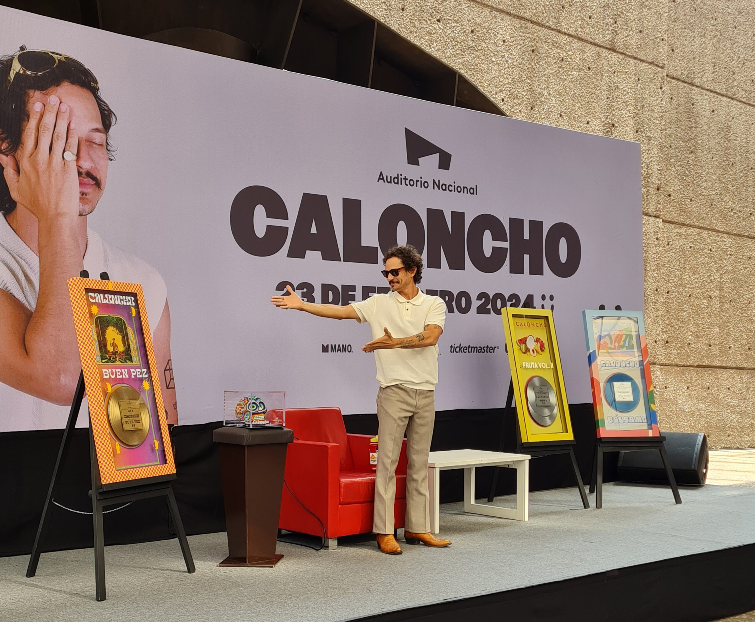 Durante la conferencia, no sólo nos contó muchos detalles sobre cómo ha sido su camino hasta este momento, las grandes emociones de estar preparando este gran show en un venue tan importante como lo es el Auditorio Nacional, sino que también pudimos compartir con él un momento especial tras recibir como premios múltiples discos por ventas por “Buen Pez”, “Fruta Vol. II” y “Bálsamo”, los cuales fueron una grata sorpresa para él.